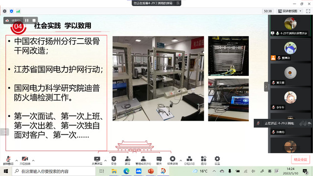 为落实2022年职业教育活动周相关工作要求,传递“技能让生活更美好”的主题思想,智能网联教研室于2022510日开展第一第二课堂协同育人培养工匠型人才(网络空间安全人才培养案例)在线交流活动。