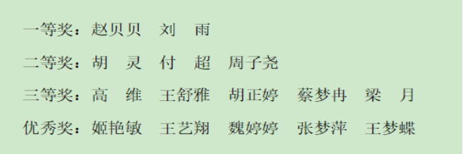 经评审,本次英语演讲比赛遴选一等奖2名,二等奖3名,三等奖5名及优秀奖5名。排名前3的选手将代表我校参加江苏省“外研社杯”职场英语演讲大赛,并备选江苏省职业院校技能大赛(高职组)英语口语赛项。本次演讲比赛激发了学生的英语学习兴趣,同时,以赛促教、以赛促学,既促进大学英语教学改革,又彰显了南城学子风采。