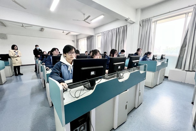 2月23日上午8:30,由数字文创学院肖一倩副院长以及学院和校教务处相关负责老师组成的巡考小组到达玄武中专,双方召开了考前会议,进一步确定考核相关事宜。正式考核于上午9点开始,玄武中等专业学校20级信息5班共计26名同学参加了考核,所有考生均顺利完成考核交上答卷。最终考核成绩由文化素质考核与专业能力考核两部分组成,考生在2022年学测水平考试中的公共基础知识考核为“合格”,则视为文化素质考核成绩为60分,占最终考核成绩的40%,专业能力考核成绩占最终考核成绩的60%。
