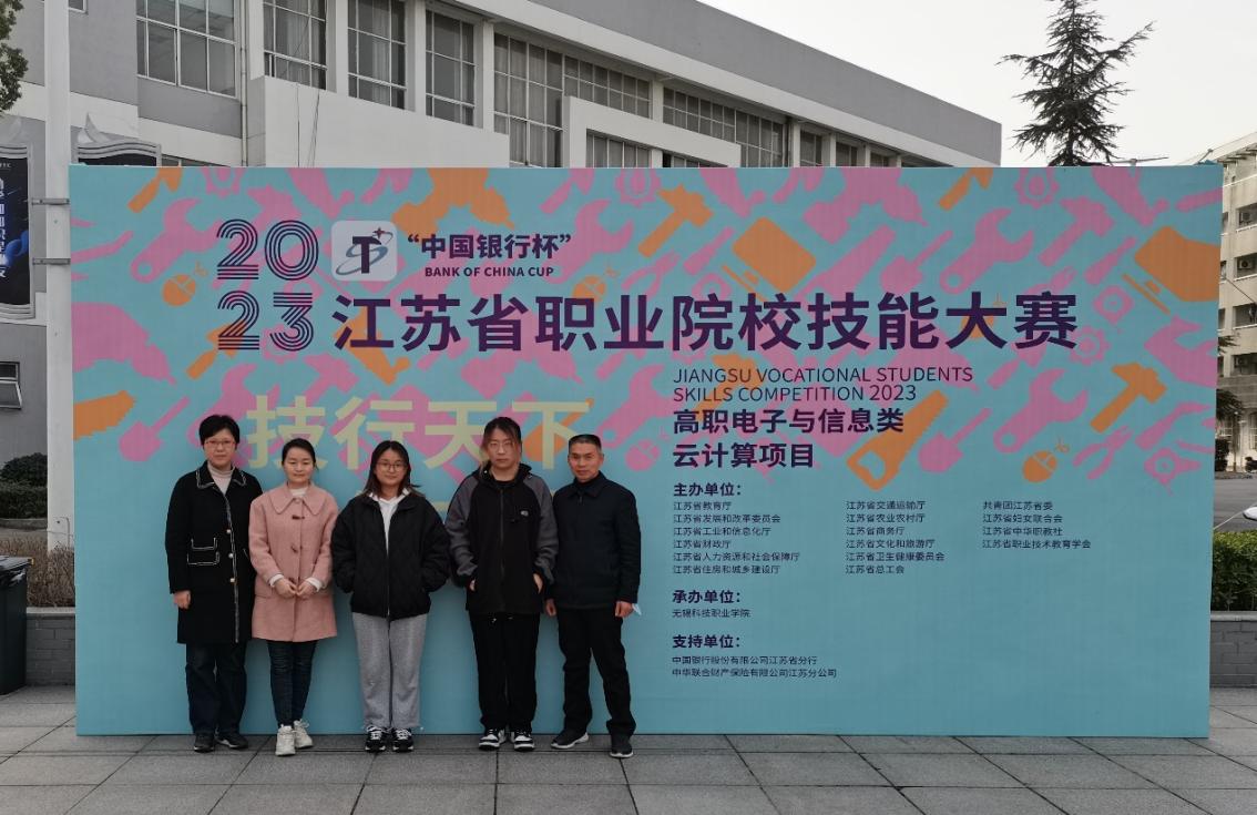 2023335日,2023年“中国银行杯”江苏省职业院校技能大赛(高职组)“云计算”赛项在无锡科技职业学院成功举办,来自全省41个高校,75名选手参与角逐。智能工程学院2021级计算机网络技术专业柴政、段熙凤同学在涂刚和蔡洁老师指导下,分别获得二等奖和三等奖。