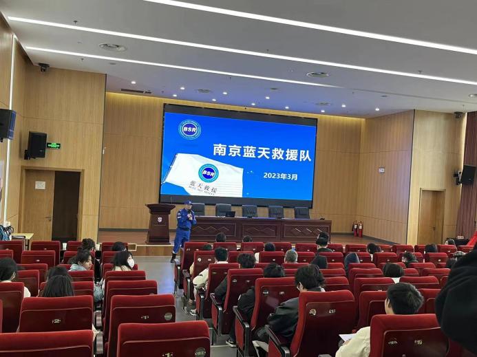 少说多做,默默奉献,完善自我,善待他人。”这是蓝天救援队的队训。3月是学雷锋志愿服务月,324日,校团委特意邀请了专业的纯公益组织南京蓝天救援队为我校100余名青年志愿者开展了题为“无畏逆行,用爱撑起生命的‘蓝天’”的信仰公开课。