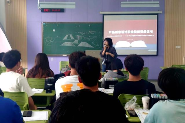 5月16日,数字文创学院产品艺术设计教研室举办产品创意设计职业技能等级证书1+X(初级)成果与考证宣讲会,此次宣讲会也是学院职业教育周系列活动之一。刘洋副教授主持,学院38名学生参加了活动。