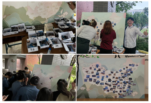 大美中国,江山如画。想要饱览祖国的大好河山,先从图游神州开始吧。在社团活动体验日现场,凤凰旅游协会同学结合专业特长,巧妙构思,多方准备,为同学们带来了“盛世中华,图游神州”知名景点贴贴乐活动。同学们选择自己想去的地方,然后找到对应景点照片粘贴到地图墙上并签名留念,这种别出心裁的体验感活动让同学们眼界大开,整个现场洋溢着昂扬向上的青春气息。