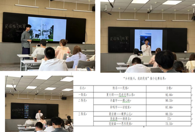 比赛现场,伴随着大屏幕展示的画面,选手们绘声绘色地将裸心岭度假村的高端乐活、花迹无想山居的自然舒适、田姐家民宿的人间烟火、蝶梦山丘的浪漫唯美、亲泉谷的温泉体验、思杰民宿的质朴温厚娓娓道来,让人无限向往。此次民宿推介比赛精彩纷呈,选手们镇定自若的临场发挥、妙语连珠的讲解与介绍,让评委和现场同学们身临其境,真切感受到各民宿的特色魅力,也展示了民宿专业学生良好的职业素养和风采。最后,结合民宿讲解、语言仪态、ppt制作等评分标准,比赛共评选出一等奖1名,二等奖2名,三等奖3名。