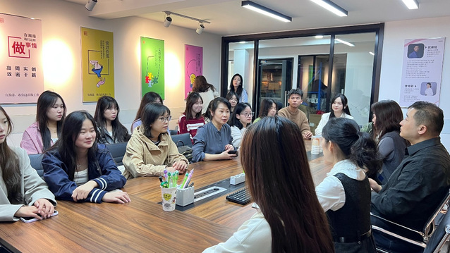 为深化职业教育改革,创新人才培养模式,积极推进现代学徒制建设工作,2023年11月3日,数字文创学院副院长肖一倩、产品艺术设计专业教师刘洋带领23级产品艺术设计专业15名学生赴江苏瀚港文化科技发展有限公司开展现代学徒制企业参观学习活动。