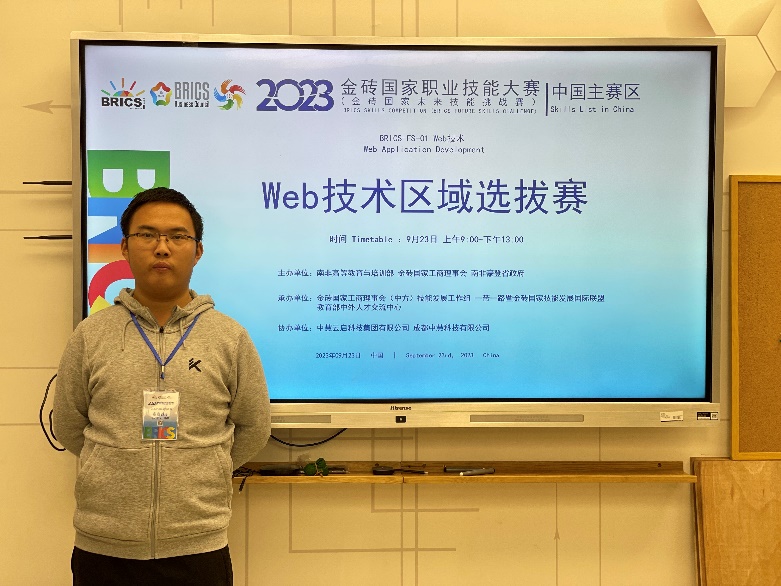 近日获悉,由智能工程学院戚华老师指导的软件技术专业学生李文喆在2023金砖国家职业技能大赛区域赛Web技术赛项中荣获一等奖