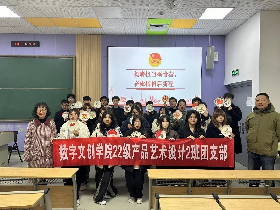 11月29日下午,数字文创学院22级产品艺术设计2班在敬业楼111教室开展“挺膺担当砺青春,奋楫扬帆启新程”主题团日活动,进一步推进学习习近平总书记重要讲话精神。本次活动由班级团支书范高婕主持,学院党总支副书记、副院长陈乃鸿及团总支书记潘米乐莅临指导,22产设2班全体同学参加。