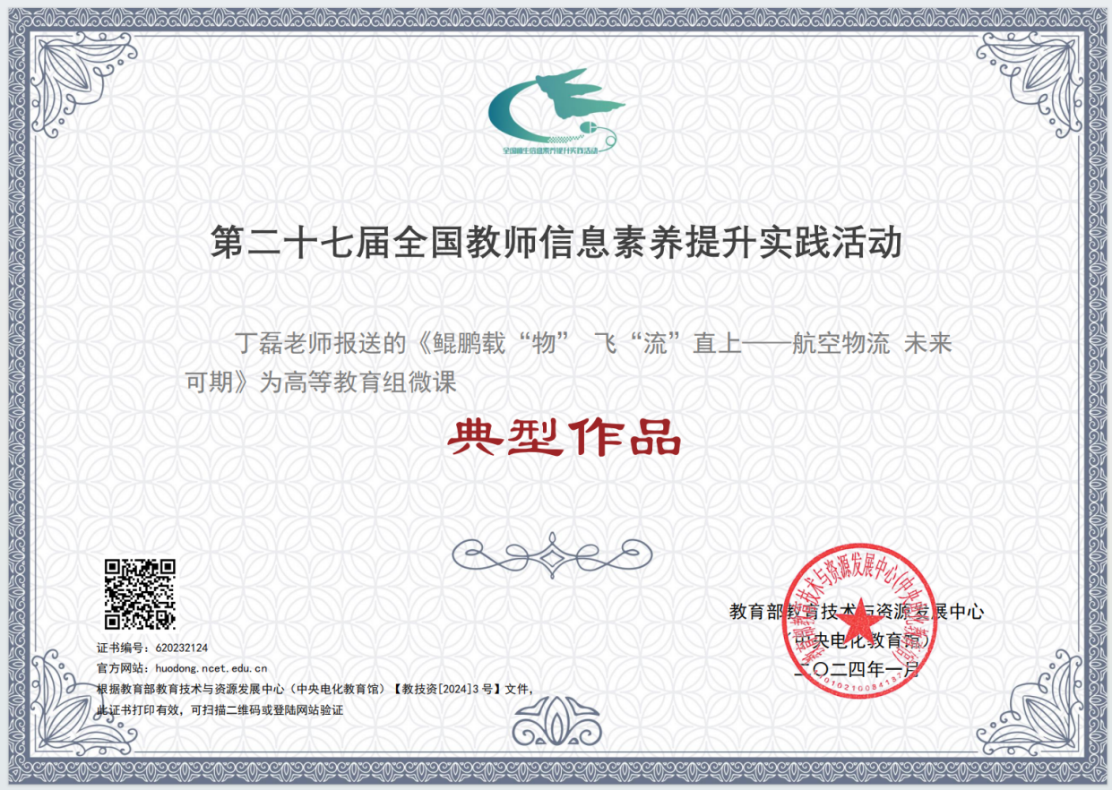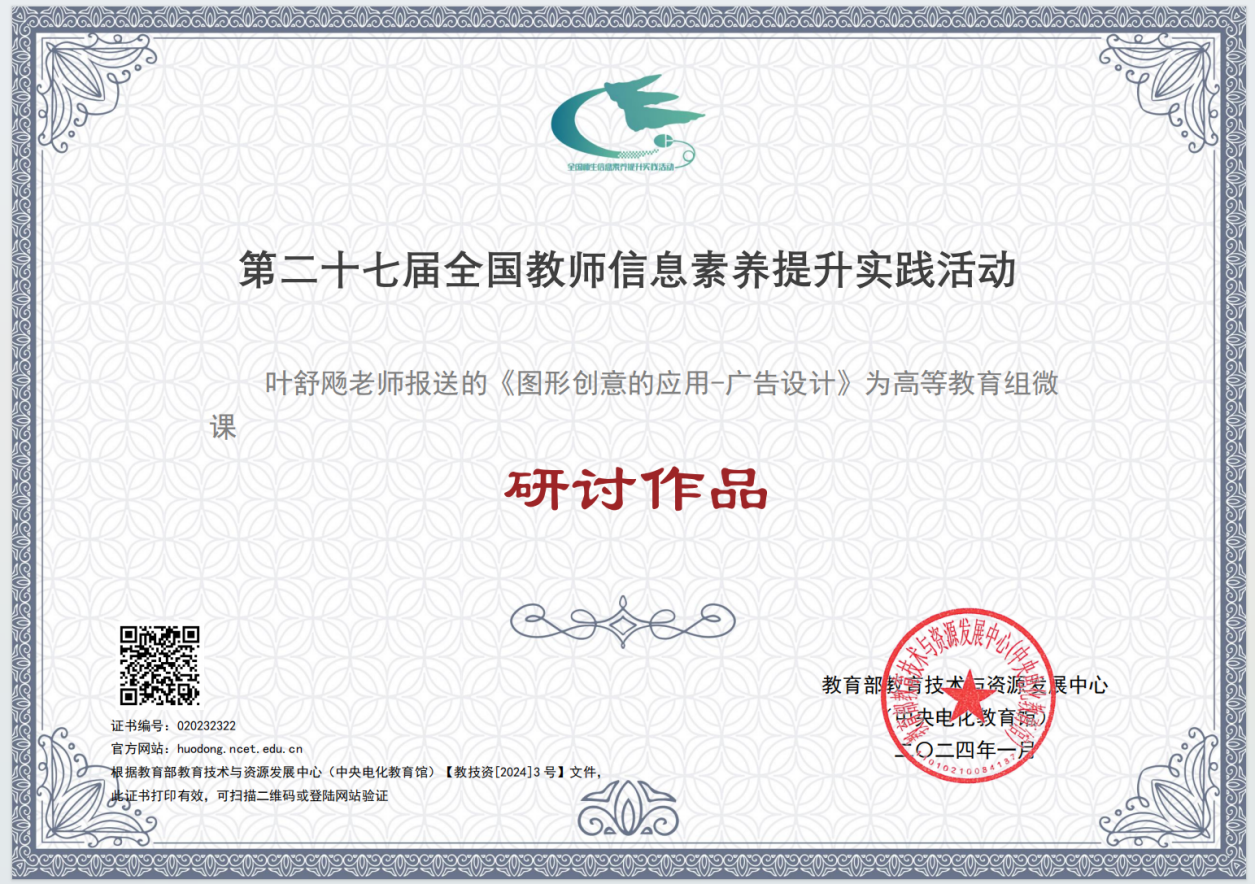 近日,中央电教馆公布了2023年全国师生信息素养提升实践活动(第二十七届教师活动)的参与情况结果,我校共有两件作品遴选成功,其中丁磊老师的微课作品《鲲鹏载“物”飞“流”直上——航空物流 未来可期》获评“典型作品”,叶舒飏老师的微课《图形创意的应用-广告设计》获评“研讨作品”。向获奖老师表示祝贺!