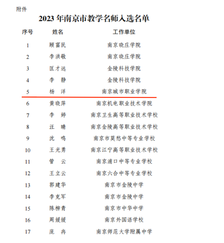 南京市教学名师评选结果于近日公布,我校杨洋教授在南京市首届教学名师的评选中获此殊荣,全市共有60名教师当选。