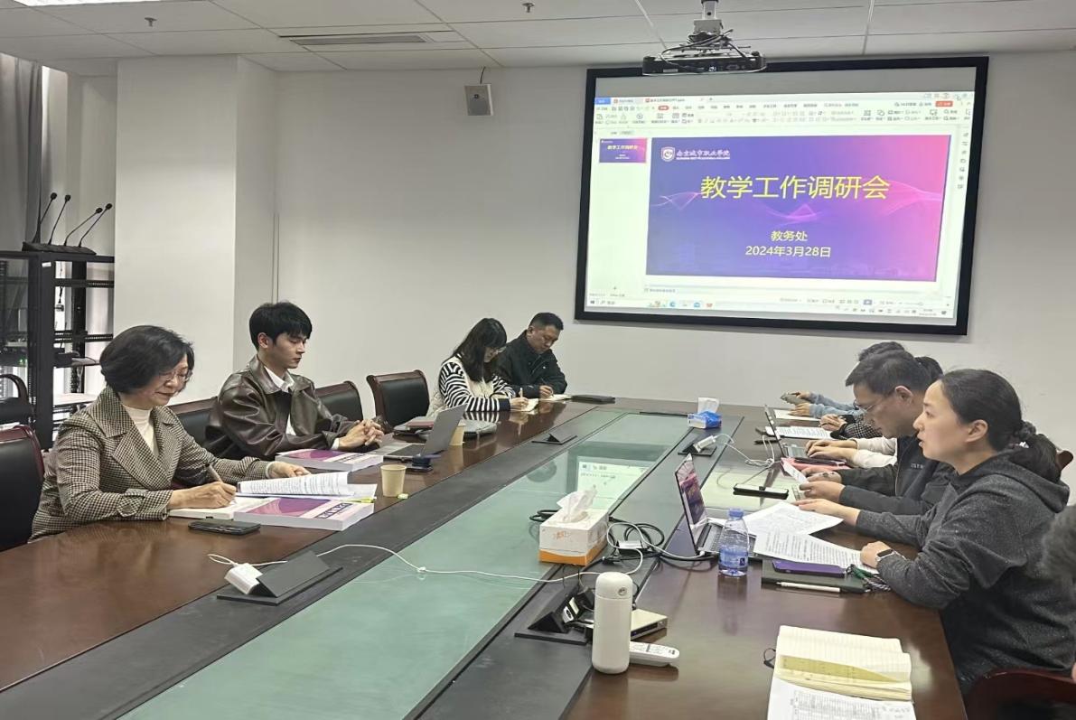 随后,倪杰一行前往教务处开展教学工作调研。教务处负责同志对部门职能、岗位设置、主要事业发展指标、工作成效和工作重点等进行了全面汇报,各科室人员围绕职教体系改革项目、“十四五”市级重点建设项目、“十四五”学校专业建设发展规划任务、职业教育“五金”建设、职业技能竞赛、教育教学管理信息化建设等专项工作现状、问题及解决思路进行了发言。