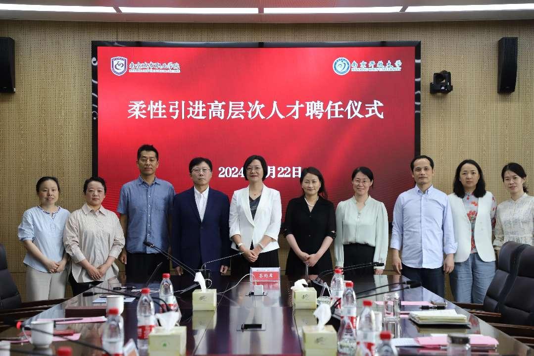 521日上午,我校在溧水校区办公楼二楼会议室举行柔性引进高层次人才聘任仪式,聘请电子商务和智慧健康养老专业带头人吴洪贵教授和单奕教授为我校兼职教授。校党委副书记、校长倪杰,校党委委员、副校长张煌出席,组织人事部、质量管理与科研处、教务处、数字财商学院和康养工程学院部门负责人参加。仪式由校党委委员、组织人事部部长葛静部长主持。