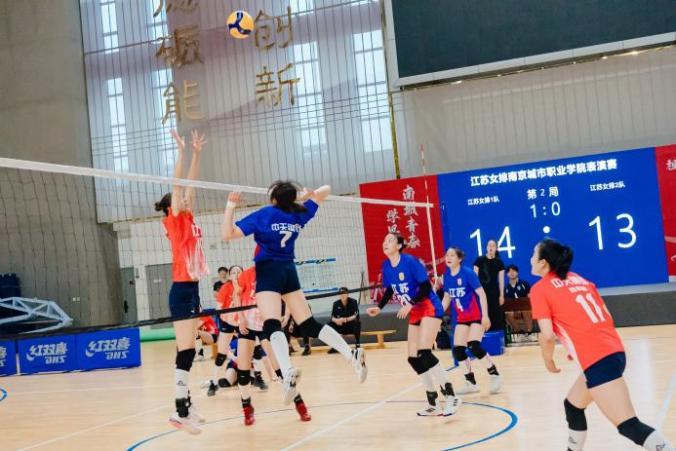 紧接着,活动进入了激动人心的现场表演赛环节。800余名师生齐聚体育馆,共同见证江苏女排的精湛技艺与团队精神。赛前,校党委副书记史献平与江苏女排主教练施海荣互赠了富有象征意义的礼物,并为比赛开球。比赛中,女排队员们展现出了超凡的技艺和默契的团队合作,每一次传球、扣杀都令现场观众热血沸腾,深刻感受到体育竞技的激情与魅力。