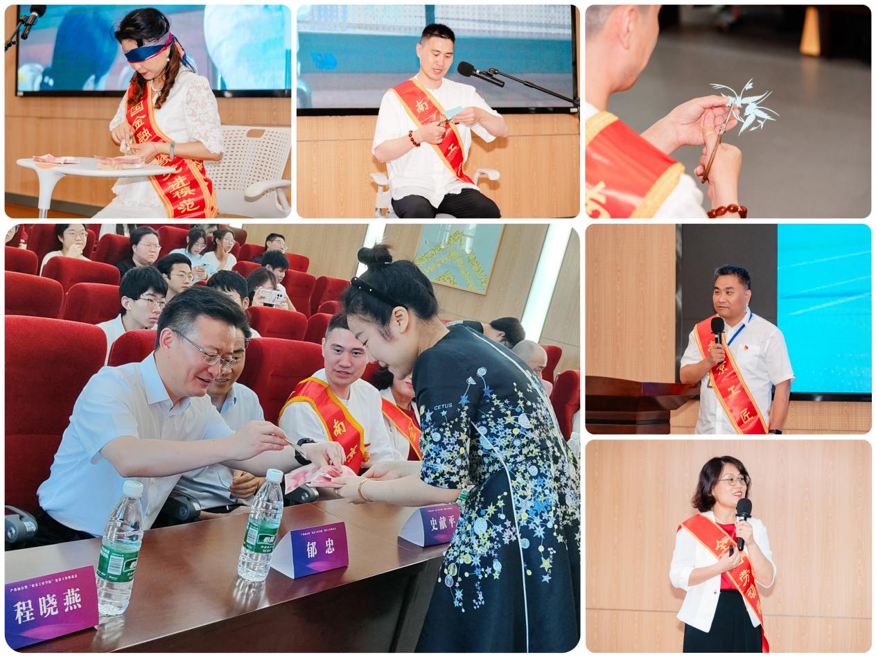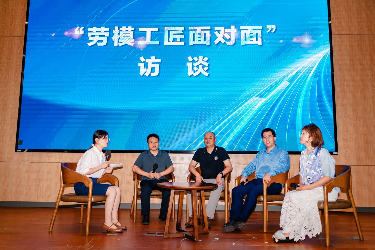 活动现场,南京新街口百货商店高级美妆师、高级客户管理师、全国劳动模范吕雪瑾,中国人民银行江苏省分行主任、全国金融系统五一劳动奖章获得者、南京工匠陶萍,南京依维柯汽车有限公司高级工程师、南京工匠、南京市五一劳动奖章获得者,上汽工匠袁刘凯,南京工艺美术有限责任公司高级美术工艺师、南京工匠、南京市五一劳动奖章获得者张钧四位劳模工匠与师生们分享了他们的故事。