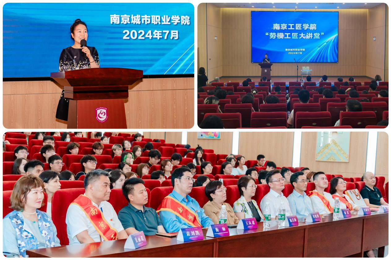 为大力弘扬劳模精神、劳动精神、工匠精神,充分发挥先进典型的模范带头作用,近日,校工会、思政教学部、校团委联合举办南京工匠学院“匠心筑梦,强国有我”劳模工匠大讲堂、我与劳模面对面访谈活动。活动邀请八位学校首批聘任的劳模工匠校外导师为师生授课。南京市总工会副主席郁忠、南京市科教卫体工会联合会主席程晓燕、党委副书记史献平,党委委员、工会主席朱小蔚,思政教学部副部长王娜娜、公共教学部副主任蔡洁及各二级学院师生代表