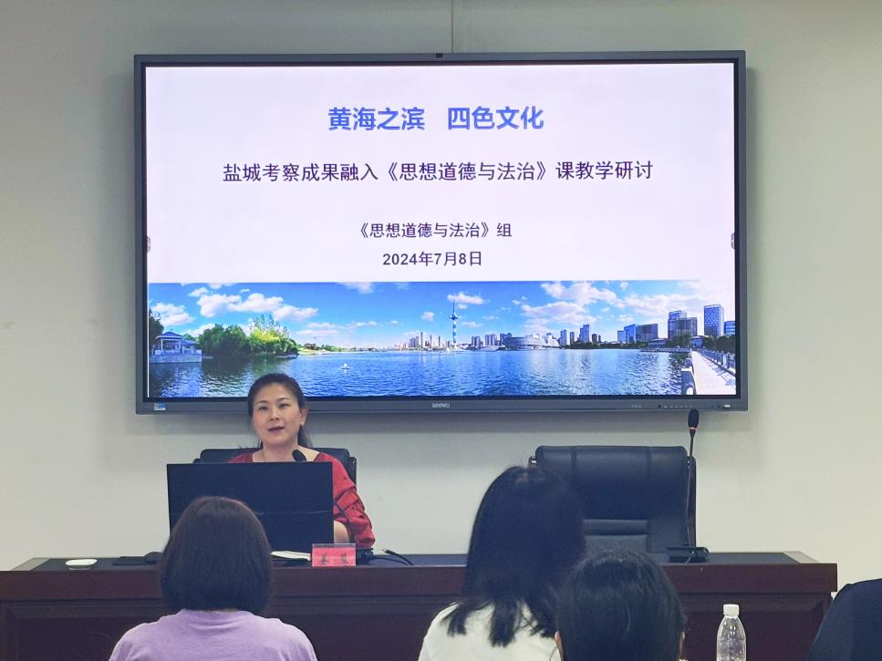 本次研学内容丰富,师生们把丰富的学习内容和学习收获融入思政课程中。在盐城市委党校,马克思主义学院开展了“师生共研”教研活动。姜慧老师以《黄海之滨 四色文化》为题做了一次生动的集体备课。她精准挖掘盐城“白色海盐文化”“红色新四军文化”“绿色滩涂湿地文化”“蓝色海洋文化”中的育人元素,将其与《思想道德与法治》六章的课程内容有机结合,为新学期教学工作谋新篇、布新局。学生们围绕本次研学经历畅所欲言,纷纷表示,思政课原来并不枯燥,行走式体验式的学习形式开阔了视野,增长了见识,让他们更加深刻地感悟到课本中的知识要点和原理精髓。