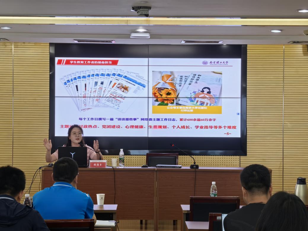 在“如何做好辅导员工作”的培训中,南京理工大学微电子学院(集成电路学院)党委副书记、纪委书记张海玉以“学生教育工作者的使命担当”为题进行授课。作为全国高校学习宣传党的二十大精神师生巡讲团成员、教育部首批全国高校辅导员名师工作室“遇见”工作室主持人、江苏省教科工会劳模和工匠人才讲师团成员、全国高校辅导员年度人物及全国高校青年教师教学竞赛思想政治课专项一等奖、江苏省五一劳动奖章、江苏省三八红旗手标兵、江苏青年五四奖章等荣誉获得者,张海玉书记结合丰富的案例和自身工作经验,深入阐述了辅导员的角色定位、工作职责和工作方法,为辅导员们更好地履行职责、服务学生提供了指导。