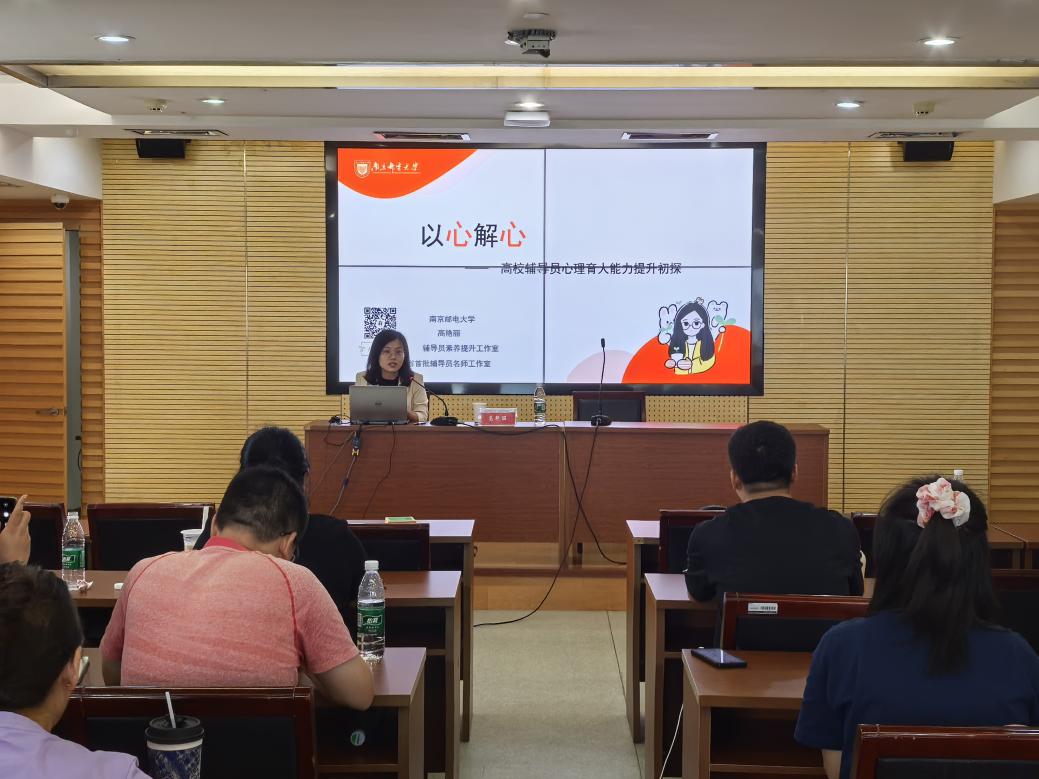 为了更好地促进学生身心健康发展,加强心理育人工作,本次培训还设置了“心理育人能力提升”课程。南京邮电大学外国语学院党委副书记、副院长、国家教育行政学院授课专家库成员、江苏省高校学习宣传党的二十大精神师生巡讲团成员、江苏省首批高校网络思政名师工作室主持人、江苏省首批辅导员名师工作室主持人、国家二级心理咨询师、全国高校辅导员年度人物及全国高校辅导员素质能力大赛一等奖、江苏省心理微课一等奖等荣誉获得者高艳丽以“以心解心——高校辅导员心理育人能力提升初探”为题,通过理论讲解、案例分析和互动体验等方式,帮助辅导员们掌握心理辅导的基本技能和方法,提升心理危机干预能力。