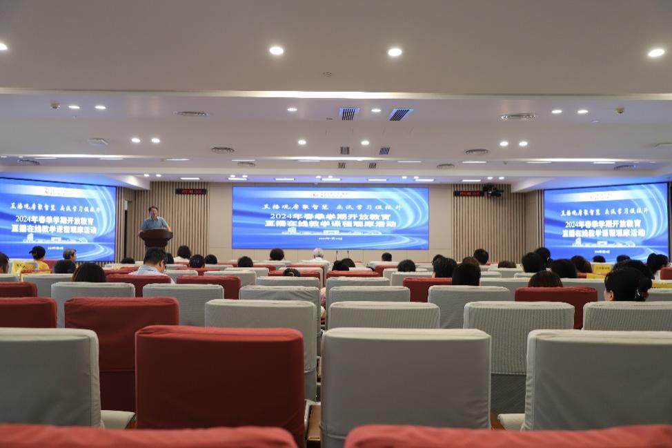 710日下午,开放教育专题培训在新街口校区六楼多功能厅进行,开放教育专业责任教师、课程责任教师,学习中心教学管理人员及辅导教师参加培训。参培老师首先集中观摩开放教育直播在线教学课程,开放教育督导专家随后点评直播教学课程亮点与特色,提出直播在线教学改进建议,之后交流开放教育直播在线教学存在问题,提出具体工作要求,研讨直播在线教学质量提升改进措施,陈正宇副校长做了总结发言。