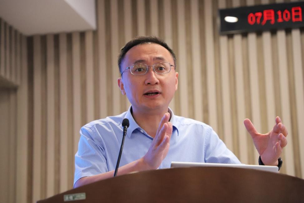 75日上午,吴洪贵教授在溧水校区办公楼一楼报告厅为大家授课,题为《职业教育“产教科”新融合与二级学院“高精尖”新跨越的双向奔赴》,各院部院长、部长,教研室主任,专业负责人参与培训。吴洪贵教授对产教融合底层逻辑进行解读,阐述了新“双高”的内在逻辑,点出第一轮“双高”后时代国内职业教育建设的几个特点,提出要在专业建设上达到“高精尖”、“产教科”两个新融合。