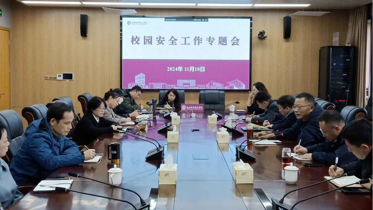 为进一步防范化解矛盾风险,全面夯实校园安全基础,20241118日下午,我校在溧水校区办公楼三楼会议室召开校园安全工作专题会议。校党委书记孙朝晖出席会议并讲话,副校长陈正宇主持会议,四院二部、社会教育和继续教育中心、宣传部、学生处、教务处、图书馆、装备与信息技术处、后勤与安保处等职能部门主要负责同志参加会议。