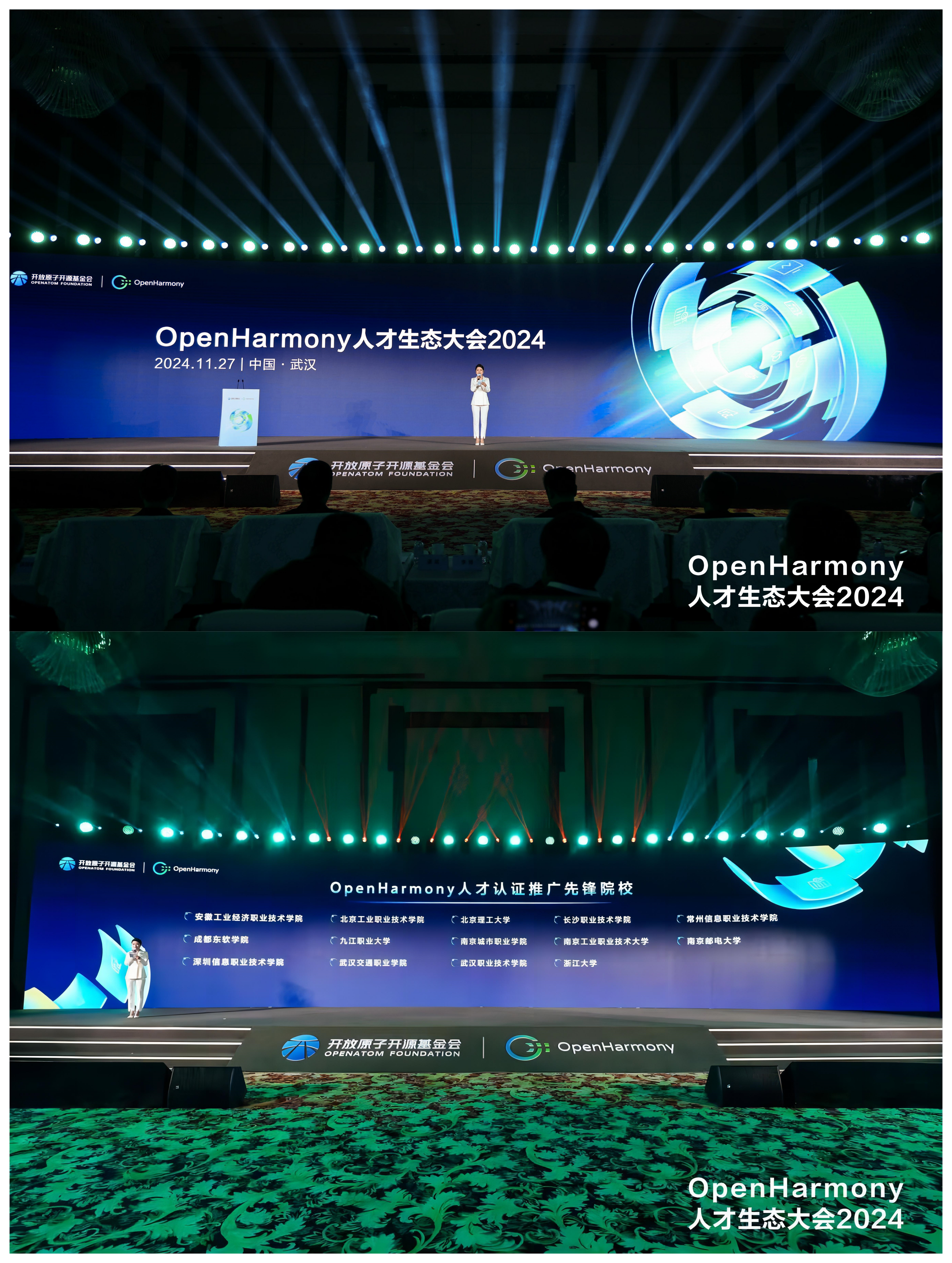 2024年11月27日在武汉召开的“OpenHarmony人才生态大会2024”上,我校荣获“OpenHarmony人才认证推广先锋院校”奖项。