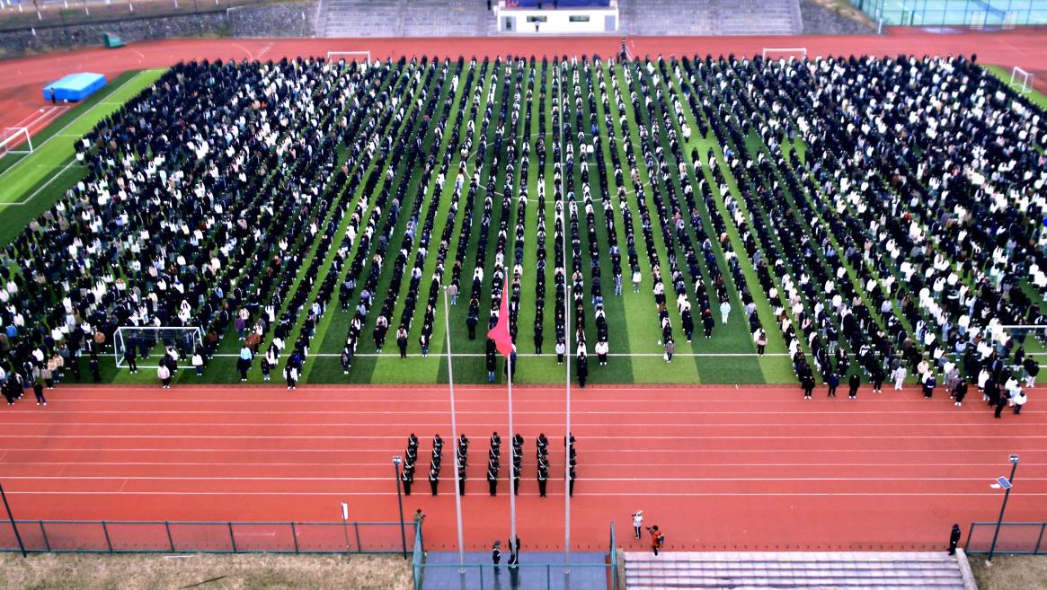 仪式在庄重的氛围中拉开帷幕。庄严的《义勇军进行曲》响彻南城校园,五星红旗冉冉升起。