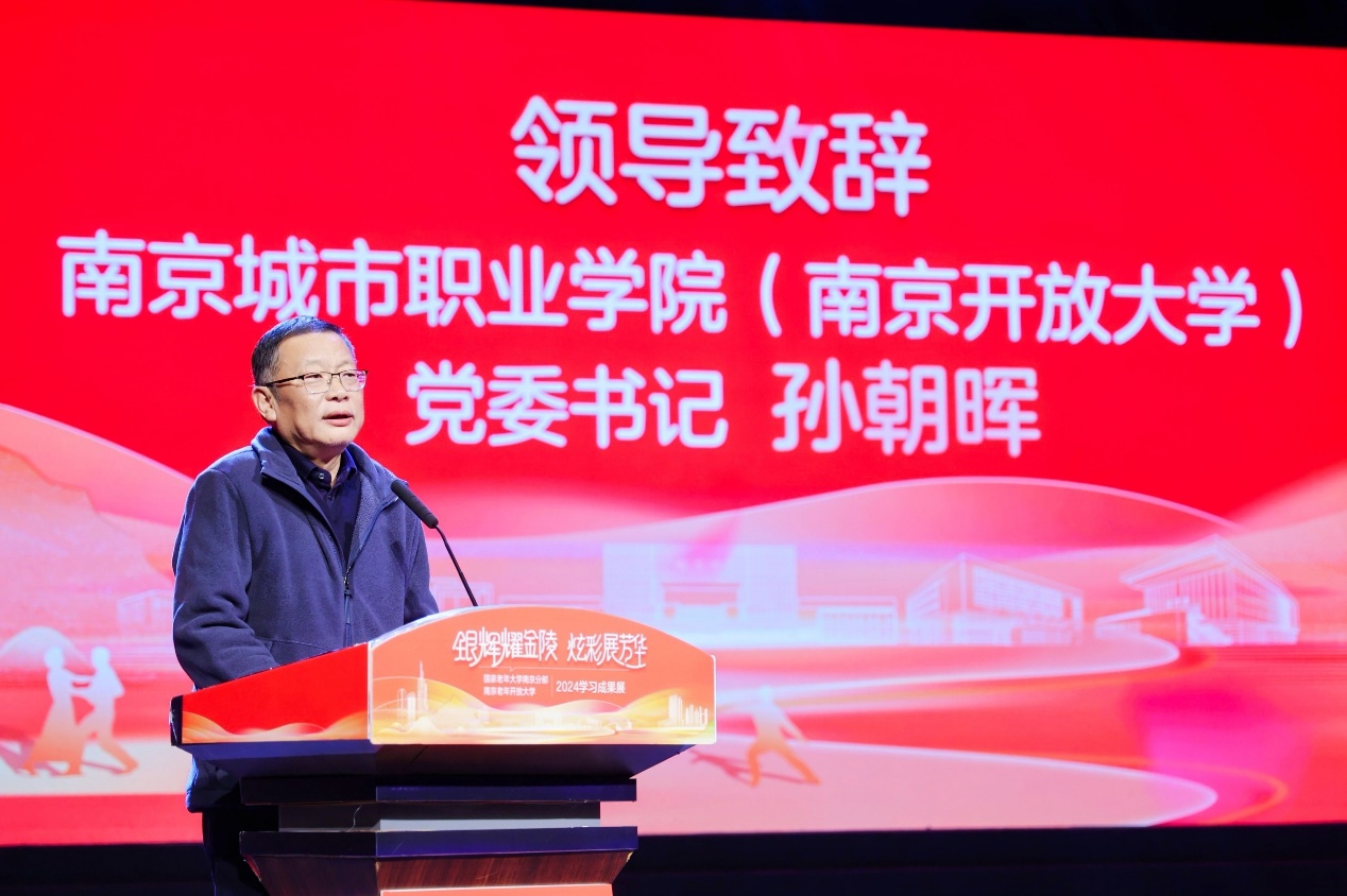 12月19日下午,国家老年大学南京分部揭牌仪式暨南京老年开放大学2024学习成果展在南京广电集团1500平米电视剧场举行。南京市委常委、宣传部部长陈勇,南京市副市长孙百军,国家开放大学(国家老年大学)党委委员、副校长范贤睿,南京市教育局局长吴秀亮,江苏省教育厅校外教育培训监管与社会教育处处长吴胜东,南京开放大学党委书记孙朝晖,党委副书记、校长倪杰等领导出席活动。