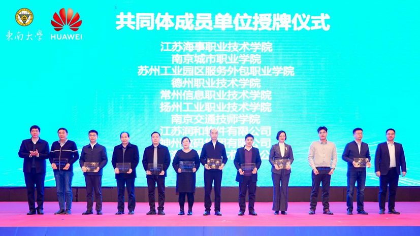 本次会议由东南大学、华为技术有限公司主办,南京信息职业技术学院、江苏海事职业技术学院承办。江苏省教育厅副厅长曹玉梅、江苏省人社厅副厅长顾潮、江苏省工信厅二级巡视员余雷、东南大学副校长孙立涛、华为江苏总经理赵国辉等200余位嘉宾与会。会上,我校当选全国数字信息技术创新产教融合共同体副理事长单位。