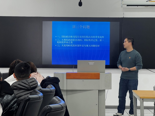 2024年1224日,数字文创学院第一党支部在敬业楼401教室组织开展了本年度第季度党课学习。此次党课由支部2024年12月24日,数字文创学院第一党支部开展了第四季度党课学习,由支部副书记周宇寰主讲,主题为“国际形势与中国外交:从重大问题应对看习近平外交思想”。党课内容深入分析了当前国际形势的深刻变化,阐述了习近平外交思想的科学内涵和实践路径,为党员同志们更好地理解中国外交政策、坚定理想信念提供了重要指导。