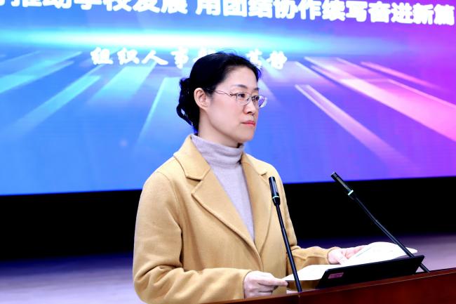 党委副书记、校长倪杰同志总结了2024年度重点工作,部署了2025年主要工作。她指出,过去一年全校上下凝心聚力、实干担当,取得了“1个提升、2个强化、3个实现、4个达成”的工作成果。实现了学校整体办学水平的较大提升;思政教育改革提升育人实效得到强化,产教融合与校企合作得到强化;实现招生就业质量优化、实现“三全育人”成效彰显和实现终身教育影响力扩大;宣传思想文化工作任务达成、强化师资队伍建设的目标达成、完善内部治理体系的任务达成,校园安全稳定使命达成。她结合全国、省市教育大会的精神、教育强国建设的战略部署,“双高计划”建设的新要求,分析了面临的形势与挑战,并就2025年主要工作进行部署。一是加强党的领导,全面从严治党,提高办学水平;二是落实立德树人根本任务,夯实“三全育人”工作体系;三是弘扬教育家精神,打造新时代高素质教师队伍;四是强化高质量产教融合,提高人才培养质量;五是落实终身教育泛在可及,服务市民美好生活;六是提升学校治理水平,统筹发展和安全。号召全体教职工要坚决落实教育强省“三步走”战略部署,勇担使命与担当,奋力提升“两教融合”新型高校建设的新质效,书写属于学校自己的教育新篇章!
