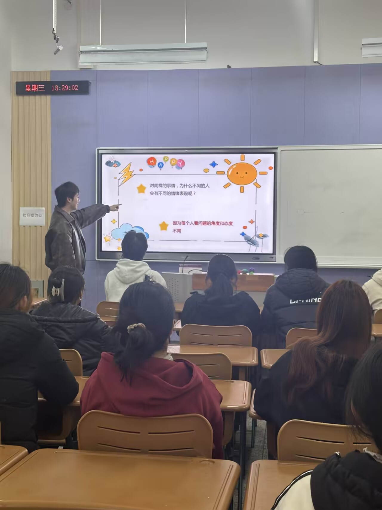 活动期间,各班团支部精心筹备,形式多样且精彩纷呈。有的团支部开启“心灵树洞”,让同学们匿名写下内心烦恼,共同探讨解决方案,在分享中发现彼此并不孤单;有的团支部观看心理健康教育电影,从影片中学习心灵调试方式,释放来自学业、生活等方面的压力,感受身心的舒缓。课堂上,团支书和心理委员变身“心灵引路人”,借助生动的PPT和视频资料,引导大家树立正确的心理健康观念,强调心理问题如同感冒一样平常,无需避讳,关键在于正视与应对。同时,心理委员宣传校内外心理服务资源,包括详细的心理咨询室地址、预约电话,以及24小时在线的校外公益心理热线,确保学生求助有门。