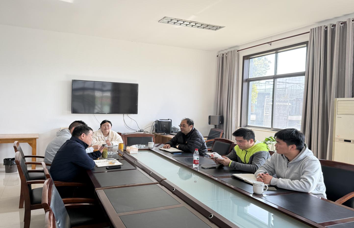 2025年4月1日下午,数字财商学院党总支副书记、副院长丁亮一行前往和凤镇乌飞塘村,参观了华成蔬菜专业合作社。此行受到了和凤镇潘慧庆主任及乌飞塘村书记路晓华的热情接待。双方就直播销售合作及产教融合等议题进行了深入交流。