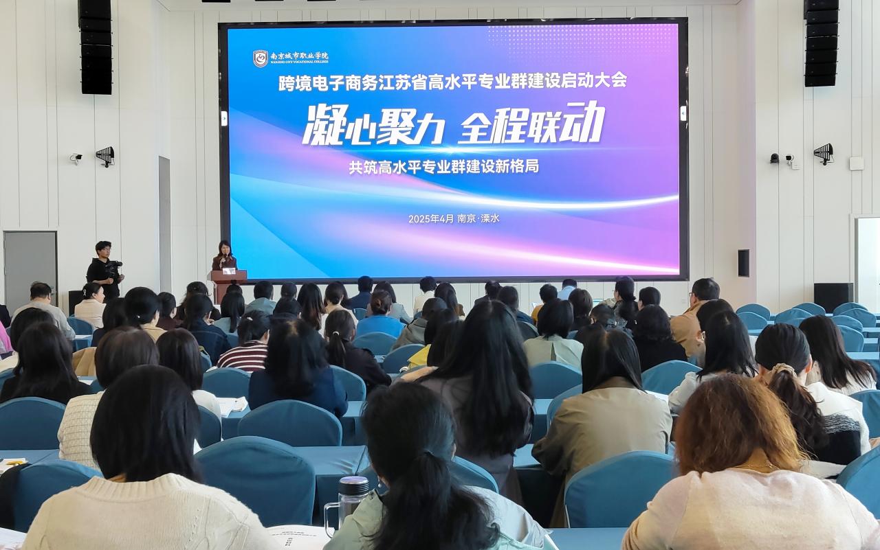 4月15日下午,我校在科创楼二楼报告厅隆重召开跨境电子商务江苏省高水平专业群建设启动大会。学校党委副书记、校长倪杰,党委委员、副校长江景,全国电子商务职业教育教学指导委员会副秘书长吴洪贵教授,南京市电子商务协会秘书长陈武光,焦点科技股份有限公司市场培训部经理杨立等嘉宾及学校各部门负责人、数字财商学院全体教师出席会议,共谋产教融合新篇章,会议由江景副校长主持。