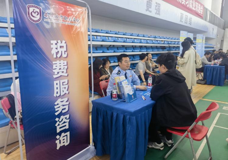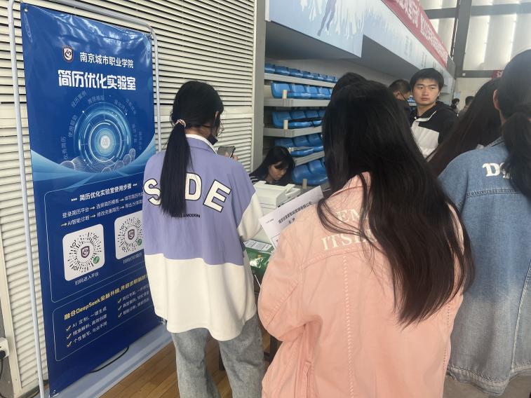 双选会现场设置多个专区。政策咨询与就业指导服务台,为毕业生提供政策指导;简历优化实验室,现场提供AI简历优化制作打印服务。溧水区人社局、溧水区税务局、秦淮区人社局及我校相关职能部门现场开展政策宣传,为学生答疑解惑,鼓励学生留宁就业。