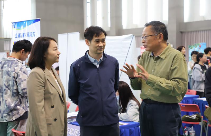 双选会期间,全体校领导到现场指导。他们亲切地与学生交流,勉励大家找准自身定位、明确就业目标;与用人单位沟通交流,了解企业情况和用人需求。