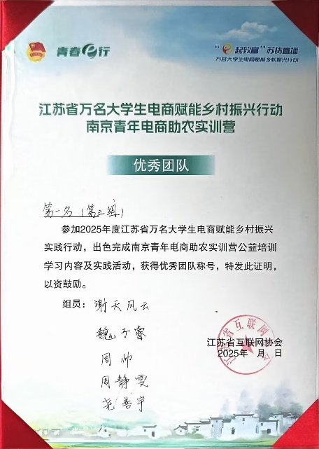 为响应国家乡村振兴战略号召,推动数字技术与农业产业深度融合,数字财商学院紧扣“数智赋能、产教融合”专业特色,组织学生团队走进南京市周边乡村,参加“青春e·建功乡村”南京青年电商助农实训营活动,以数字化技能服务乡村振兴,展现新时代职教青年的责任与担当。