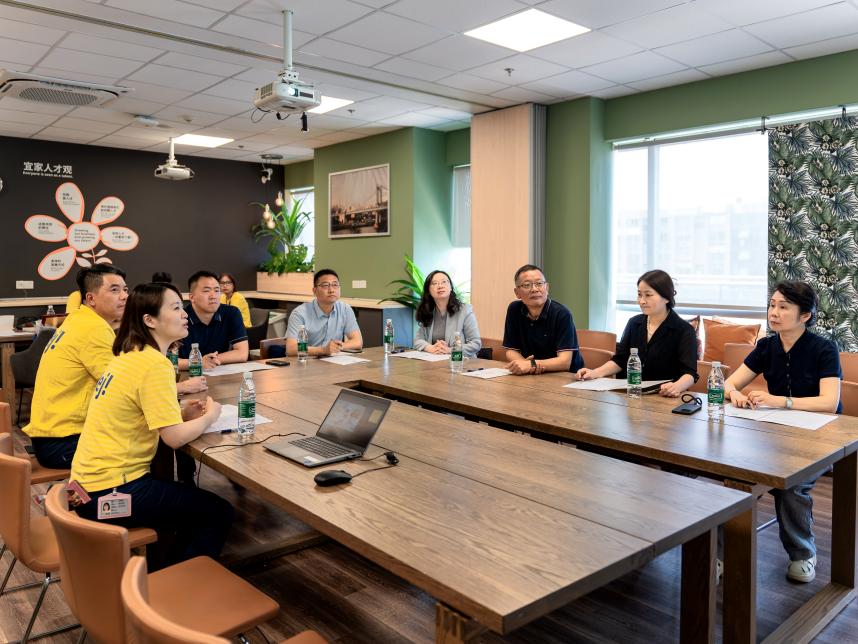 企业方代表霍光耀对孙朝晖一行的到访表示热烈欢迎。他详细介绍了南京宜家的发展概况,并重点分享了我校实习生和毕业生在企业的工作情况。他对学生们在企业的出色表现给予充分肯定,他表示,我校学生素质过硬、能力突出,留存率显著高于行业平均水平。