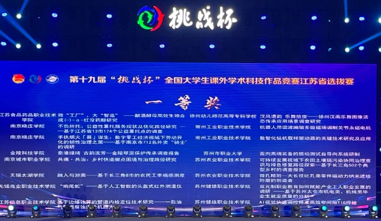 6月7日至9日,第十九届“挑战杯”全国大学生课外学术科技作品竞赛江苏省选拔赛决赛在南京信息工程大学举办。本次大赛由共青团江苏省委、江苏省科学技术协会、江苏省教育厅、江苏省社会科学院、江苏省学生联合会主办,南京信息工程大学承办,主题为“青春为中国式现代化挺膺担当”。经层层选拔,共有122所高校的463件科创作品入围省赛决赛,竞争异常激烈。