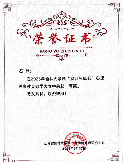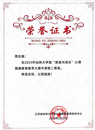 近日,在仙林大学城“家庭与成长”心理健康教育教学大赛中,我校选拔的两项作品喜获一等奖和二等奖。其中,学生处心理健康教育中心石静老师的《赋能 共生:心理障碍学生家校沟通的5步法》聚焦心理障碍学生的家校沟通难题,荣获大赛一等奖。数字财商学院辅导员周念琪老师的《突围:原生家庭的忧与爱》剖析原生家庭对个人成长的影响,荣获大赛二等奖。