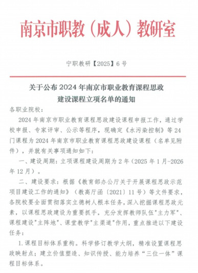 近日,南京市职教(成人)教研室公布2024年南京市职业教育课程思政建设课程名单,我校《数据库技术》与《体育(传统健身功法)》两门课程凭借扎实的课程建设基础、创新的教学理念以及显著的思政育人成效成功入选。