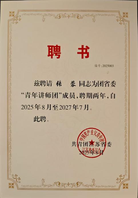 喜报-我校马克思主义学院青年教师获聘共青团江苏省委“青年讲师团”成员
